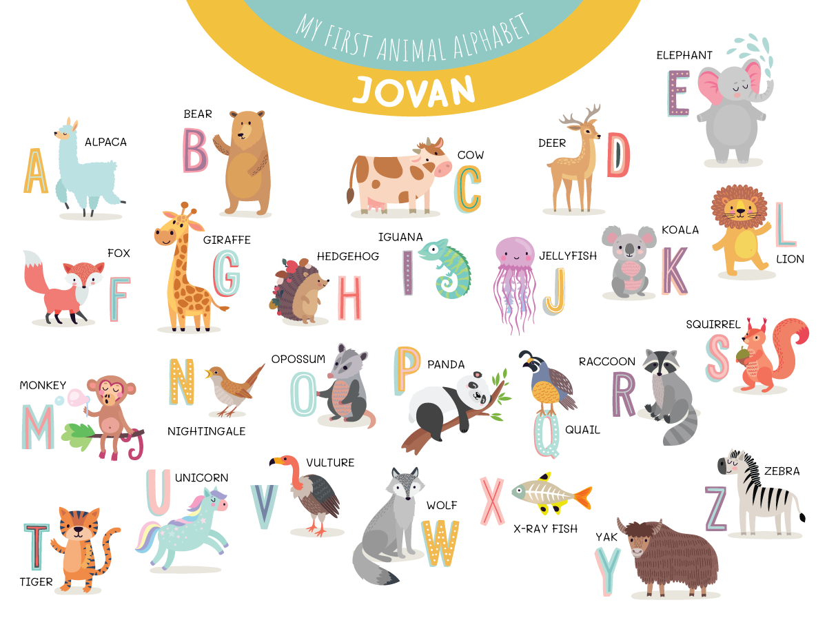Podmetač Moja životinjska abeceda na engleskom 60x45cm