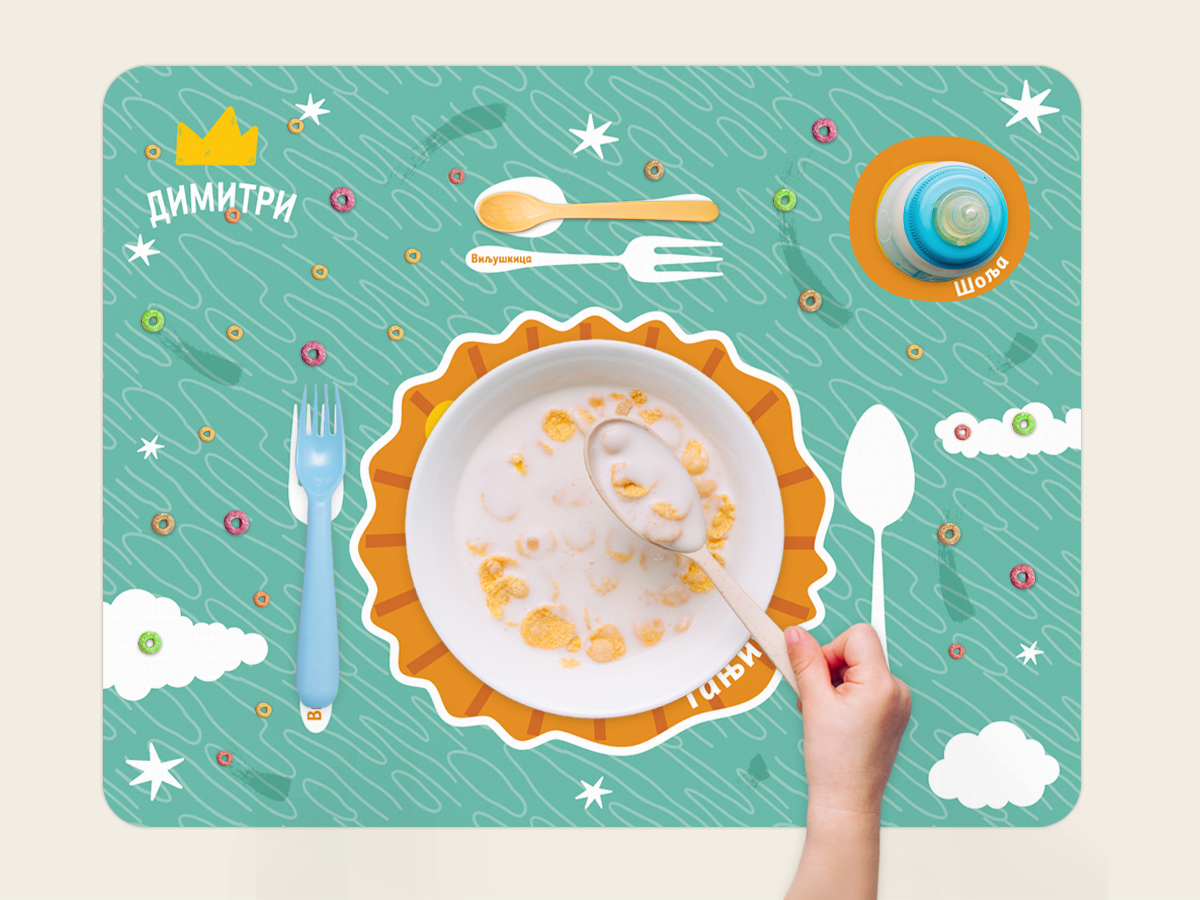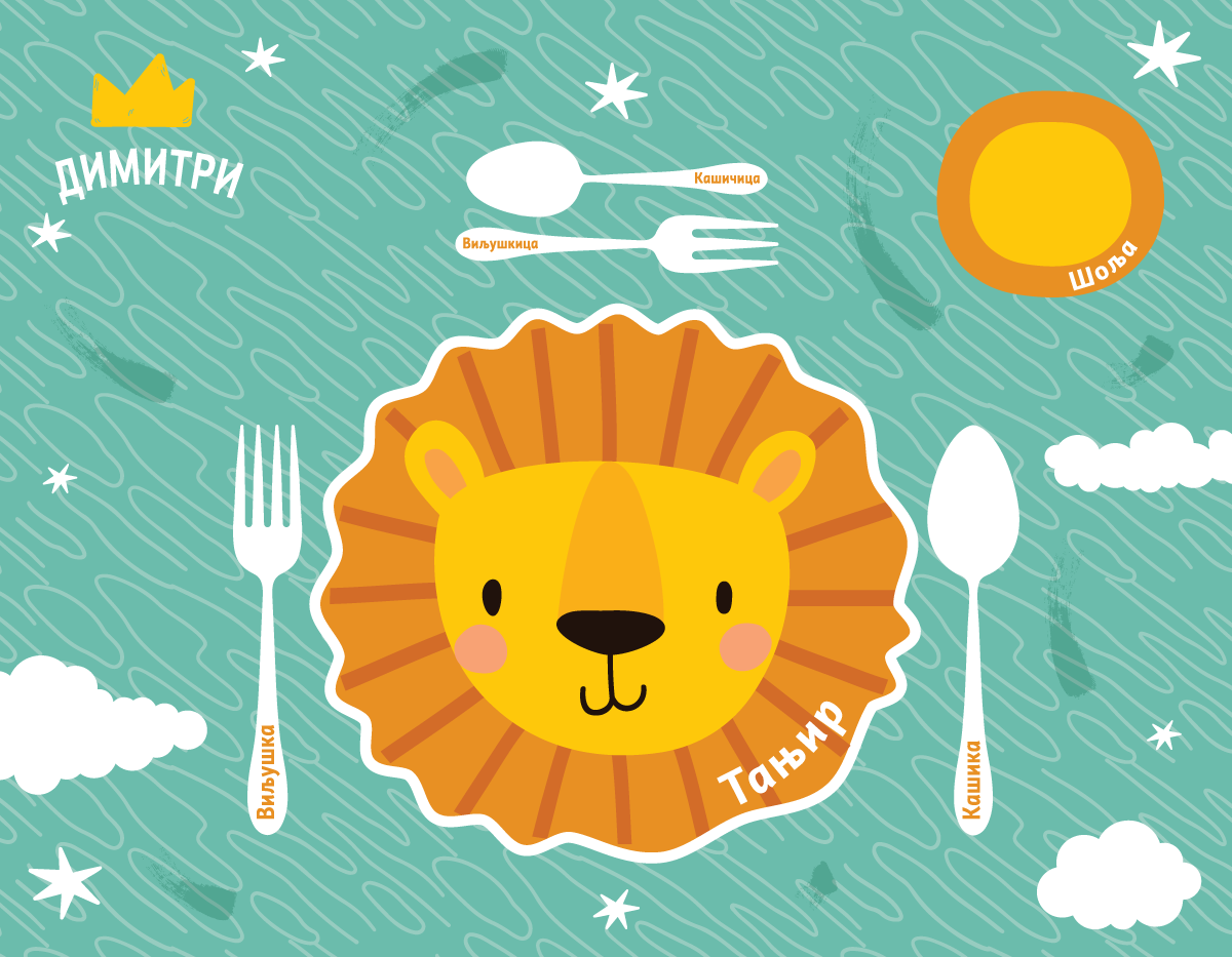 Mesto tanjira, pribora za jelo i šolje je jasno naznačeno i omogućava detetu da nauči da postavlja sto po modelu bez pomoći roditelja.