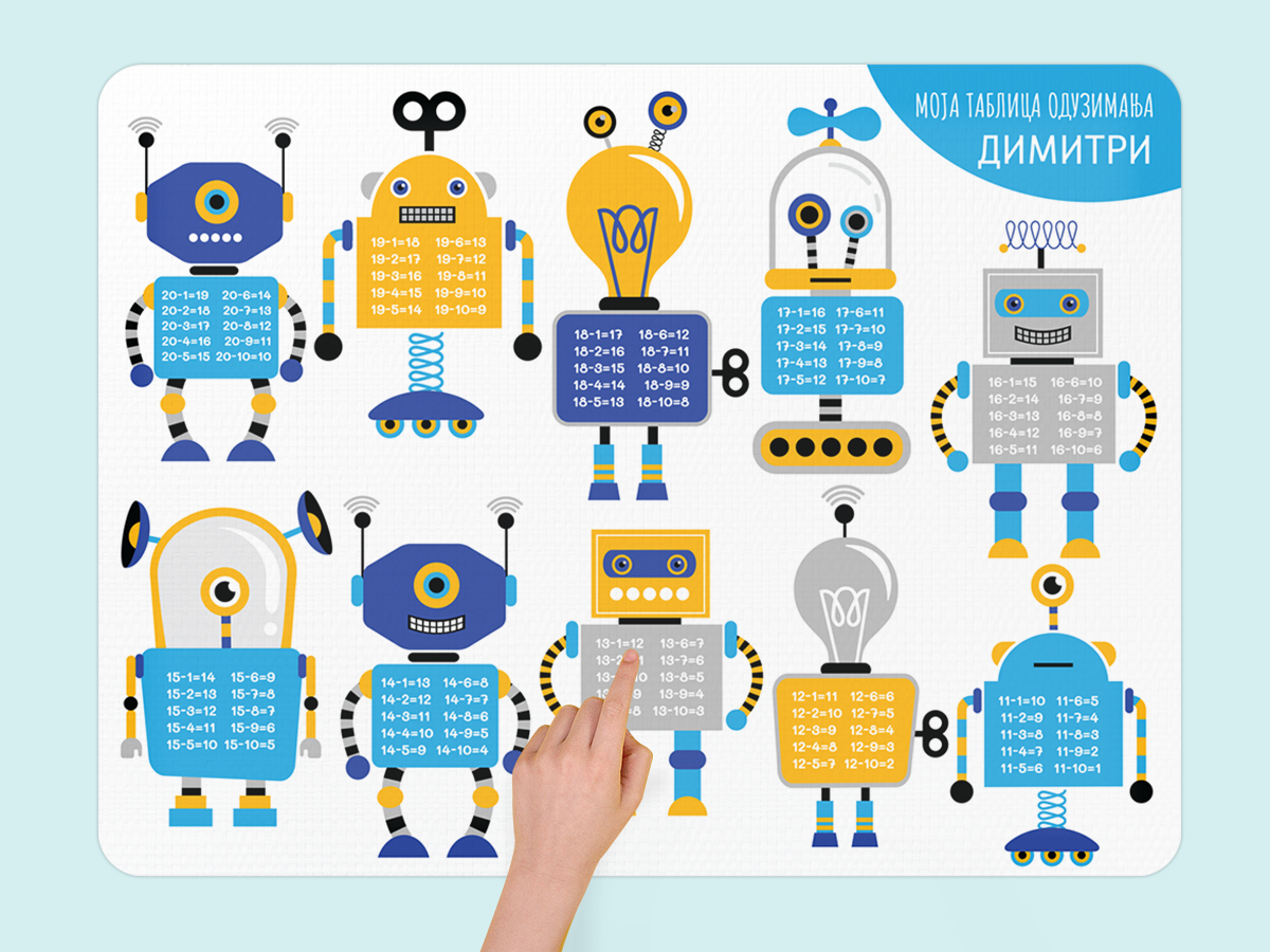 Podmetač Moja tablica računskih operacija "Roboti" 60x45cm
