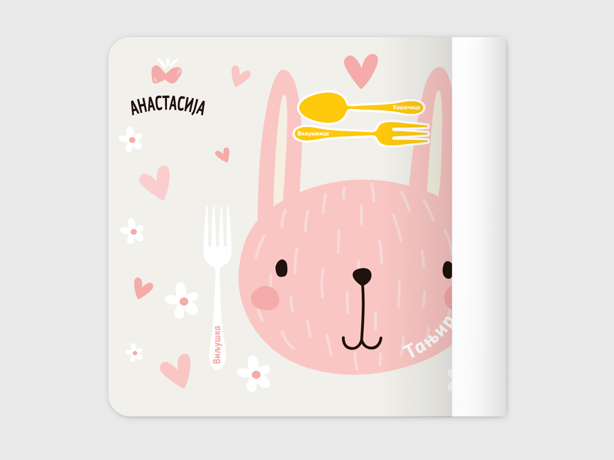 Mesto tanjira, pribora za jelo i šolje je jasno naznačeno i omogućava detetu da nauči da postavlja sto po modelu bez pomoći roditelja.