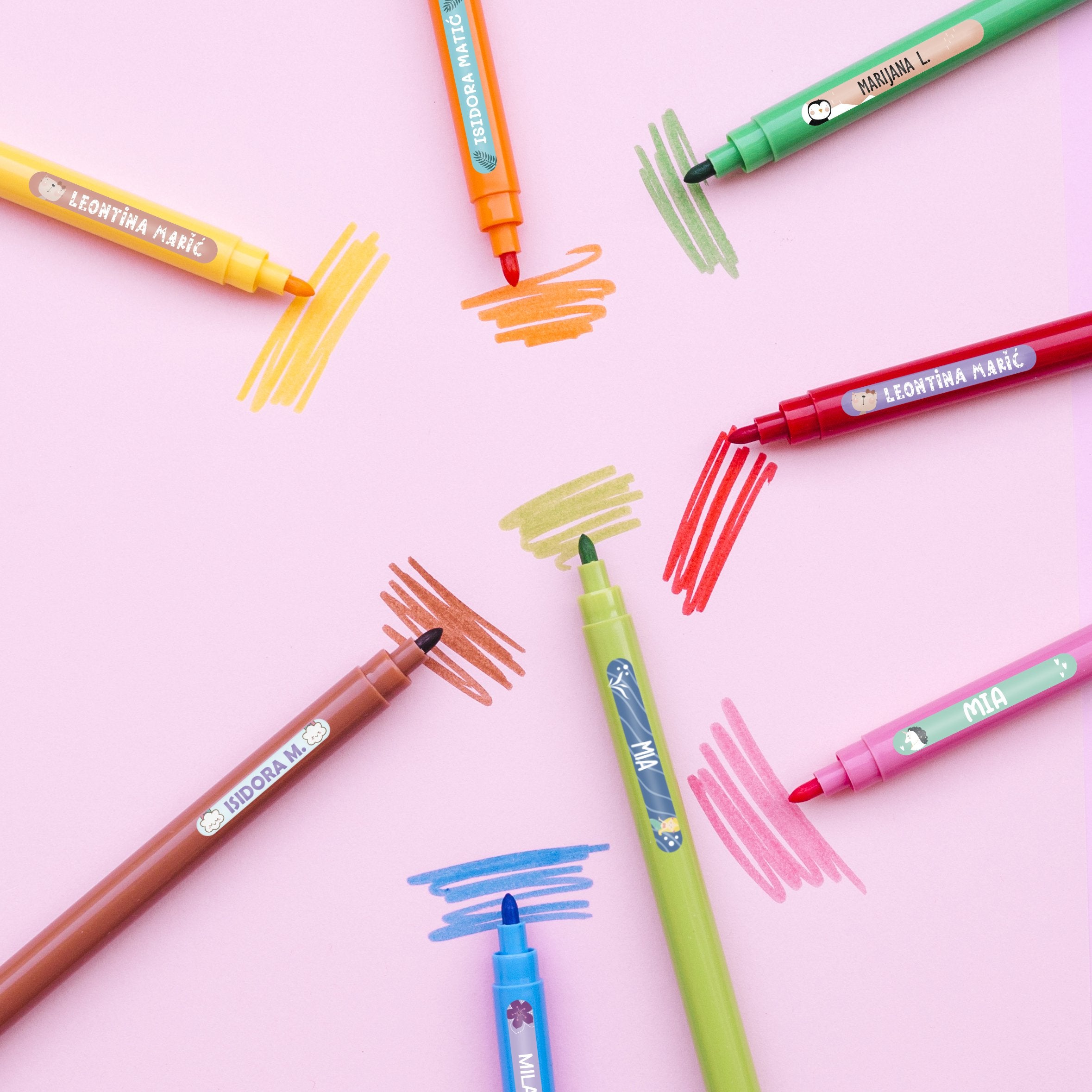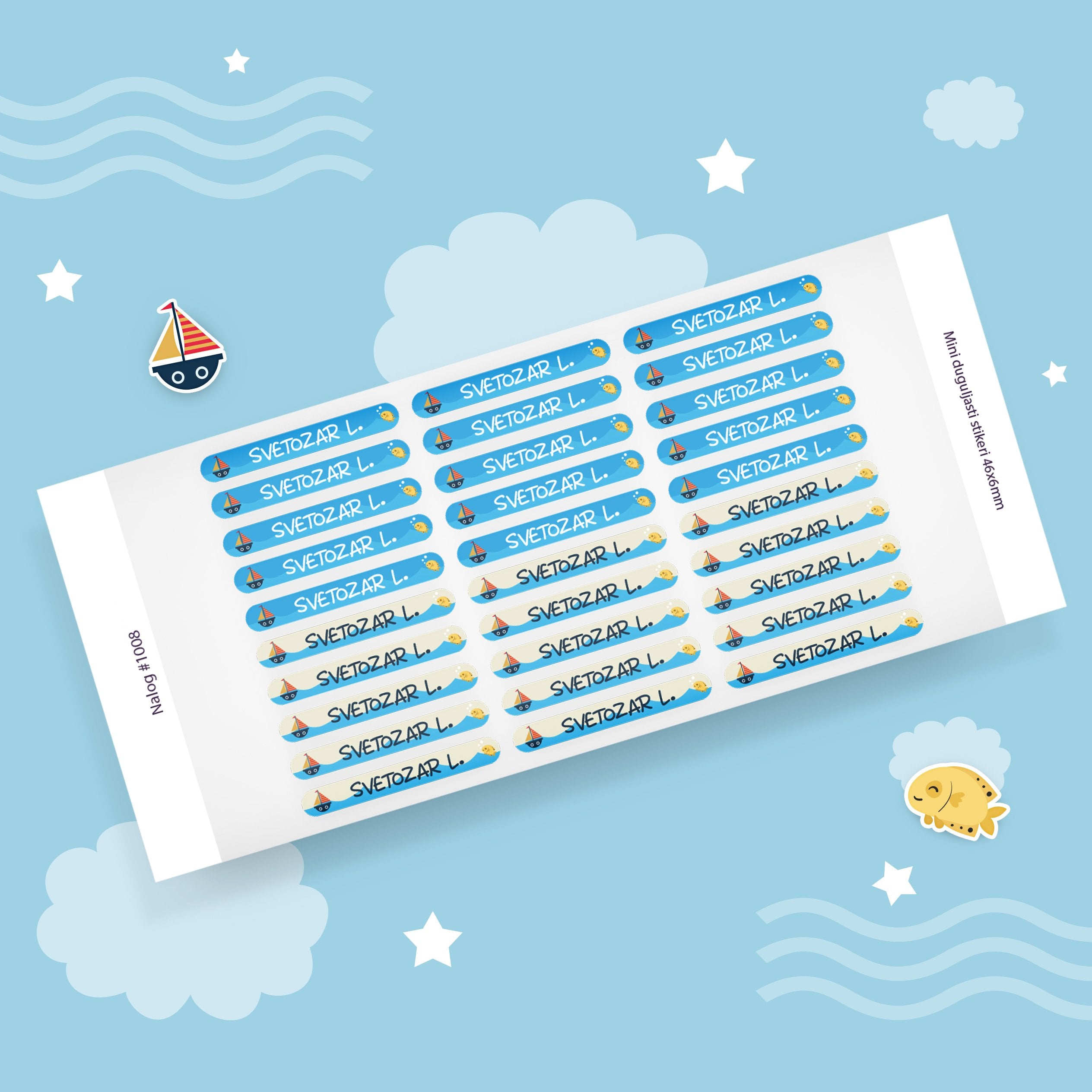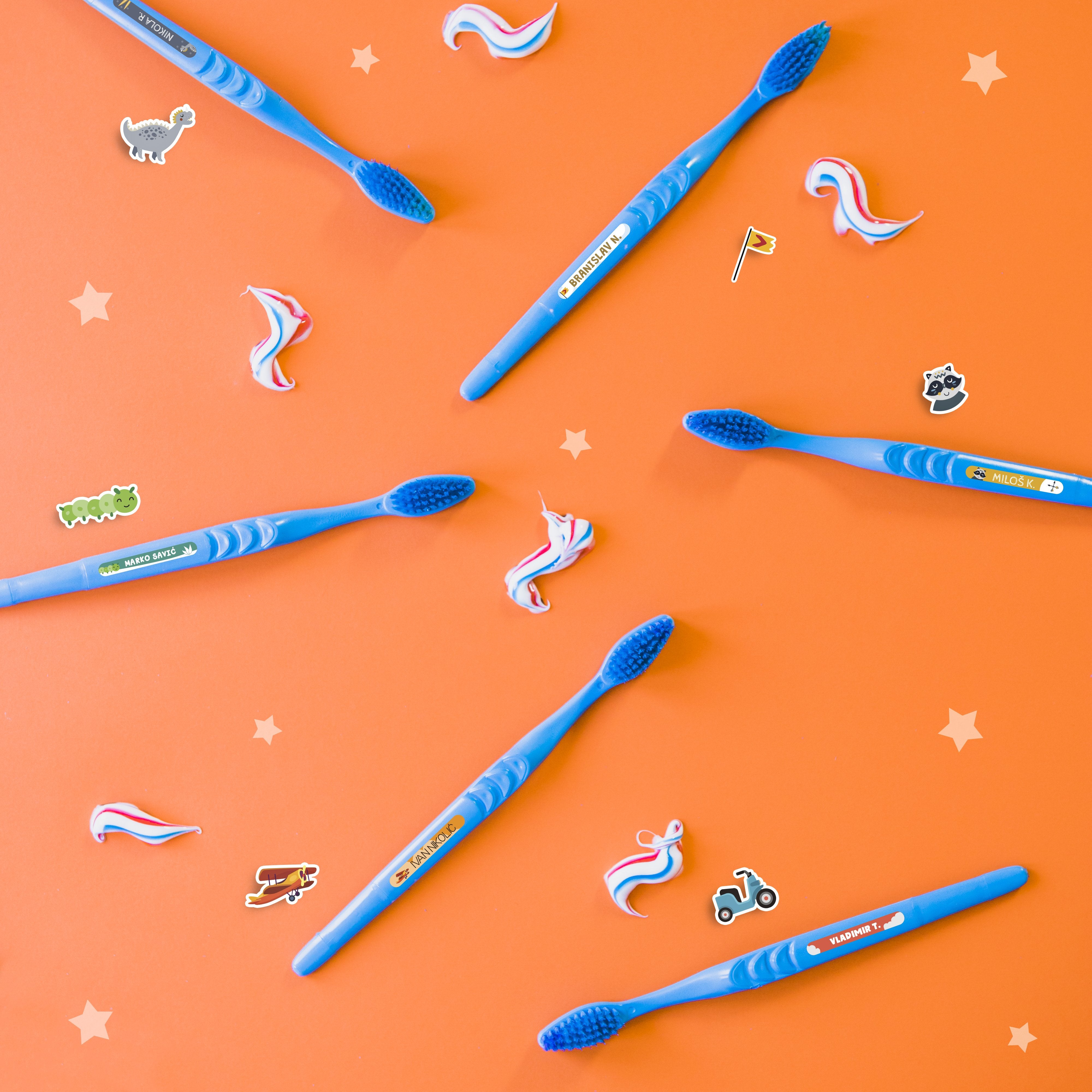 Personalizovane samolepljive stikere možete koristiti da obeležite sve što poželite: bojice, školski pribor, četkice za zube, sunčane naočare i uopšte, sve stvari glatkih površina.